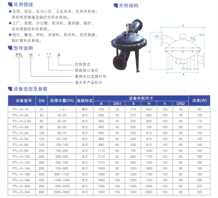 用在热交换器及锅炉的补水系统。